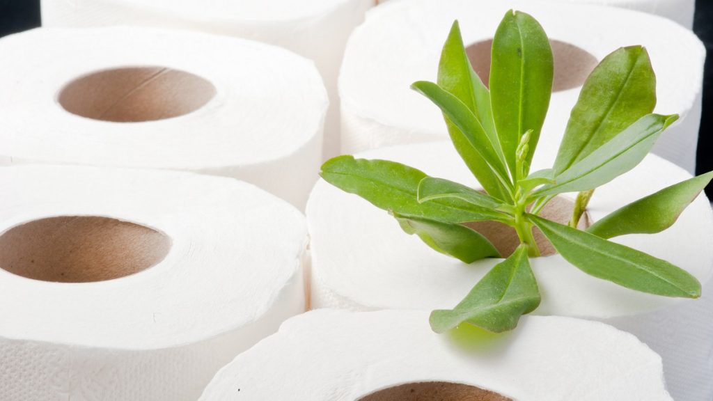rolls of toilet paper with the plant inside as a seedling tree. Recycling, ecology and conservative concept